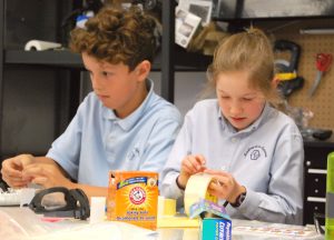 As we explore the Atlantic provinces of Canada, students were challenged to design and construct a ship that could hold weight and stay afloat. In their teams, students had to work on social skills and self-management skills as they completed the challenge. Then, we got to test the boats in