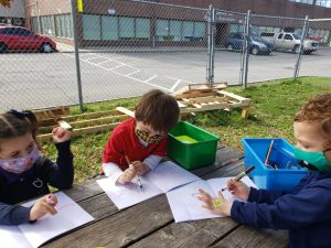 No matter the weather, we will be taking advantage of our outdoor learning space. Yesterday was so beautiful that it would have been wrong to not go out! We did our afternoon journal entry outside and then had a few minutes to run around before going back in to our