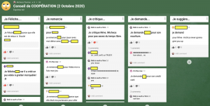 Conseil de Coopération – Cooperative Counsel Définition : Le conseil de coopération est un lieu de gestion de la classe, de mise en commun des réussites, des difficultés et des échecs, un lieu de réflexion pour trouver consensus et solutions. Ce n’est pas une causerie, ni un comité élu par