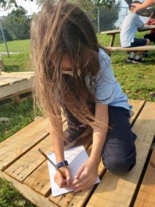 The weather this week has been beautiful, and we decided to take advantage of it. We brought our learning outside. The students worked on their short stories and really enjoyed the change of scenery and fresh air. At the end of class, they asked me if we could go outside