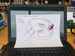 In Drama, Mme Melissa and the students talked about what makes them happy. If you know these students, you may be able to guess which one they drew! Source:: Kinder & Grade 1 Blog