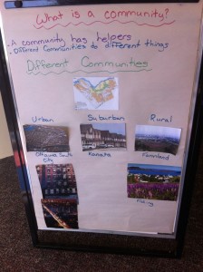 This week we have started a new unit on communities. We have been discussing how there are different types of communities and different people in them. For example we had been talking about how farmers are found in rural (country) areas. While making a chart of urban, rural and suburban