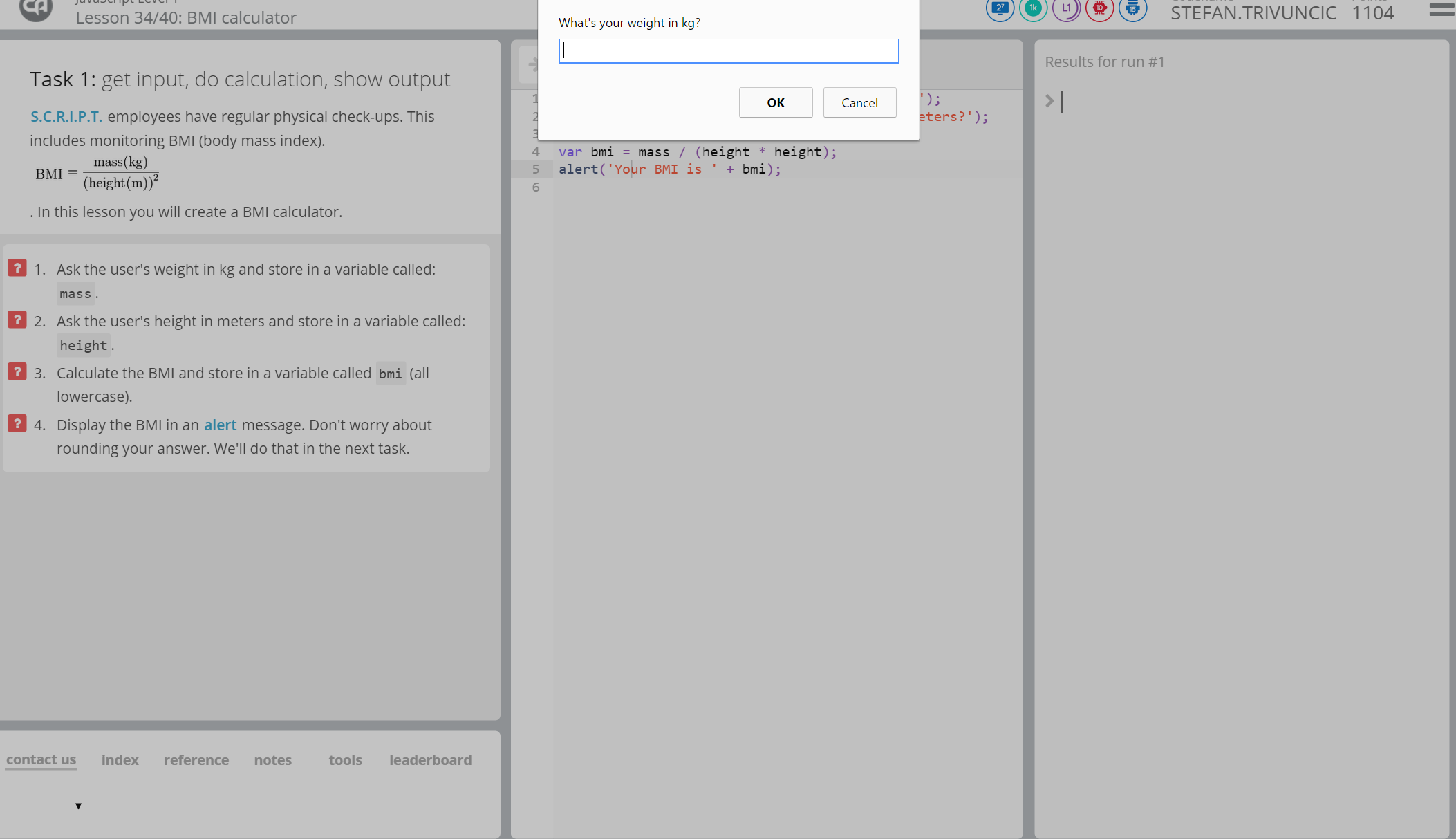 After a snack break, the AcadeCoders took learning about For Loops, where they learn how to efficiently repeat codes of their choice. Following For Loops, the AcadeCoders do the Challenge: BMI Calculator, where they take what they have been taught and design a BMI calculator.
