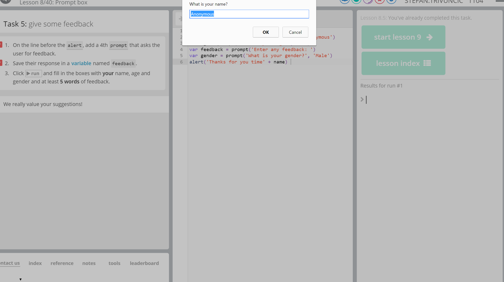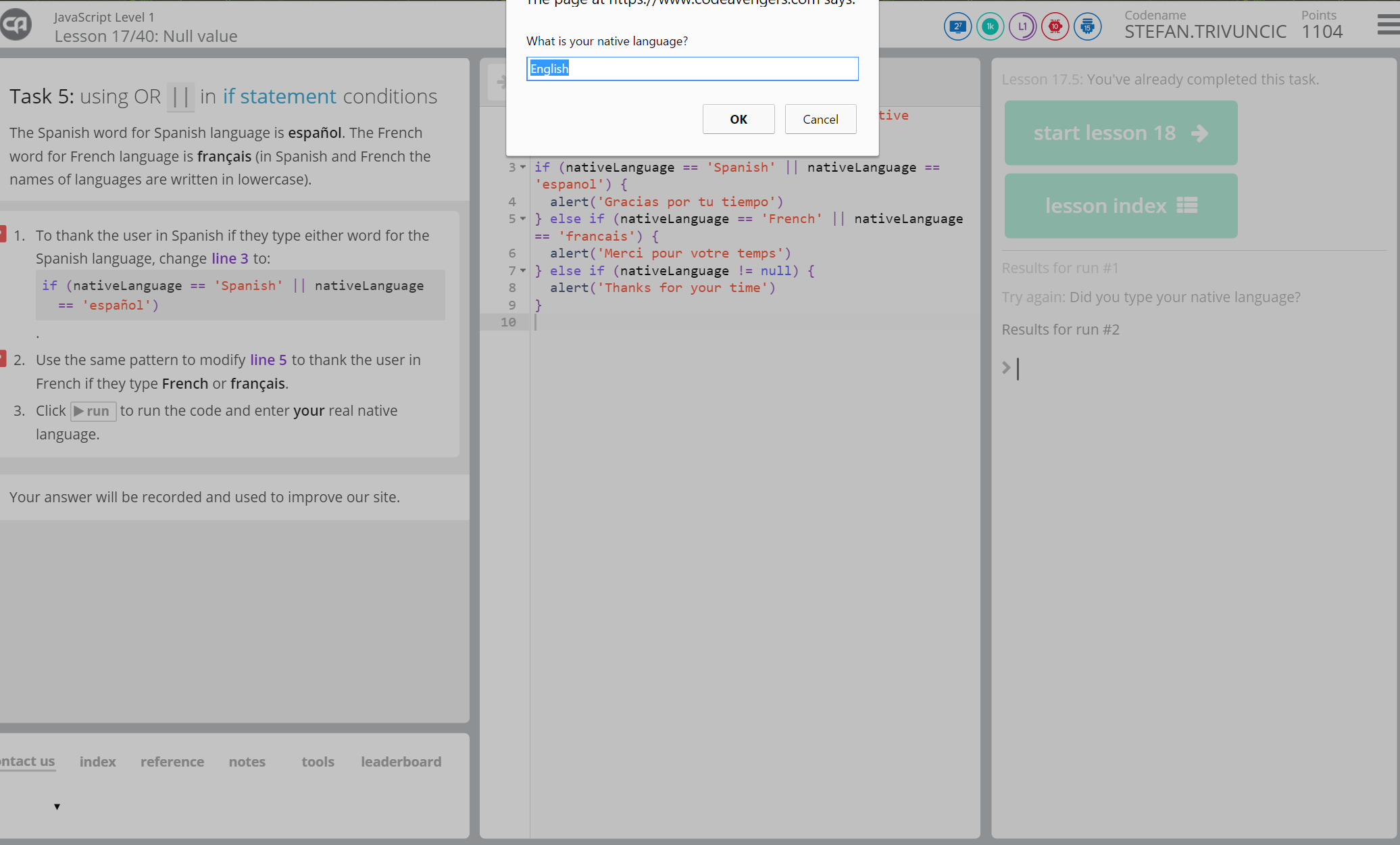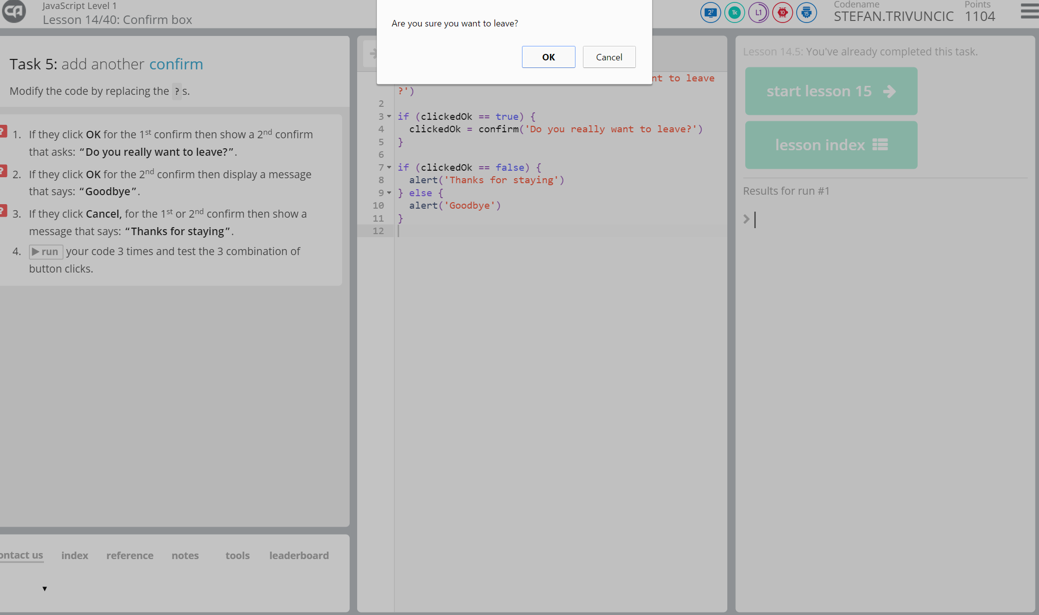In the second half of the morning, the AcadeCoders learned about the confirm box and null values. The confirm box is used in applications to verify and accept something specific while null values are are used to identify whether a code can be processed or run.