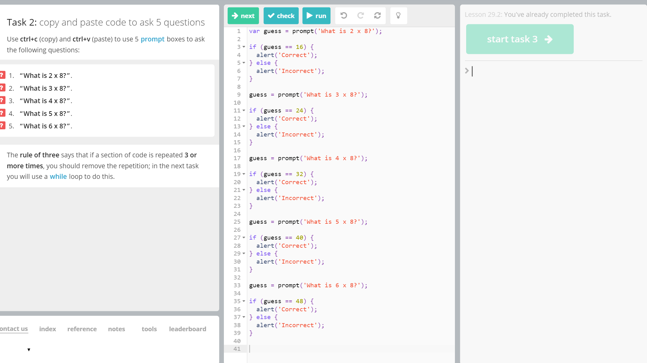 Day three of app building via JavaScript for the AcadeCoders! The AcadeCoders began the first half of the morning with while loops and infinite loops. While loops are a block of code that specifies whether a code is true or not and campers utilize that with their own codes, while infinite loops are used to identify a prompt to be infinite and they implement that with their own codes.