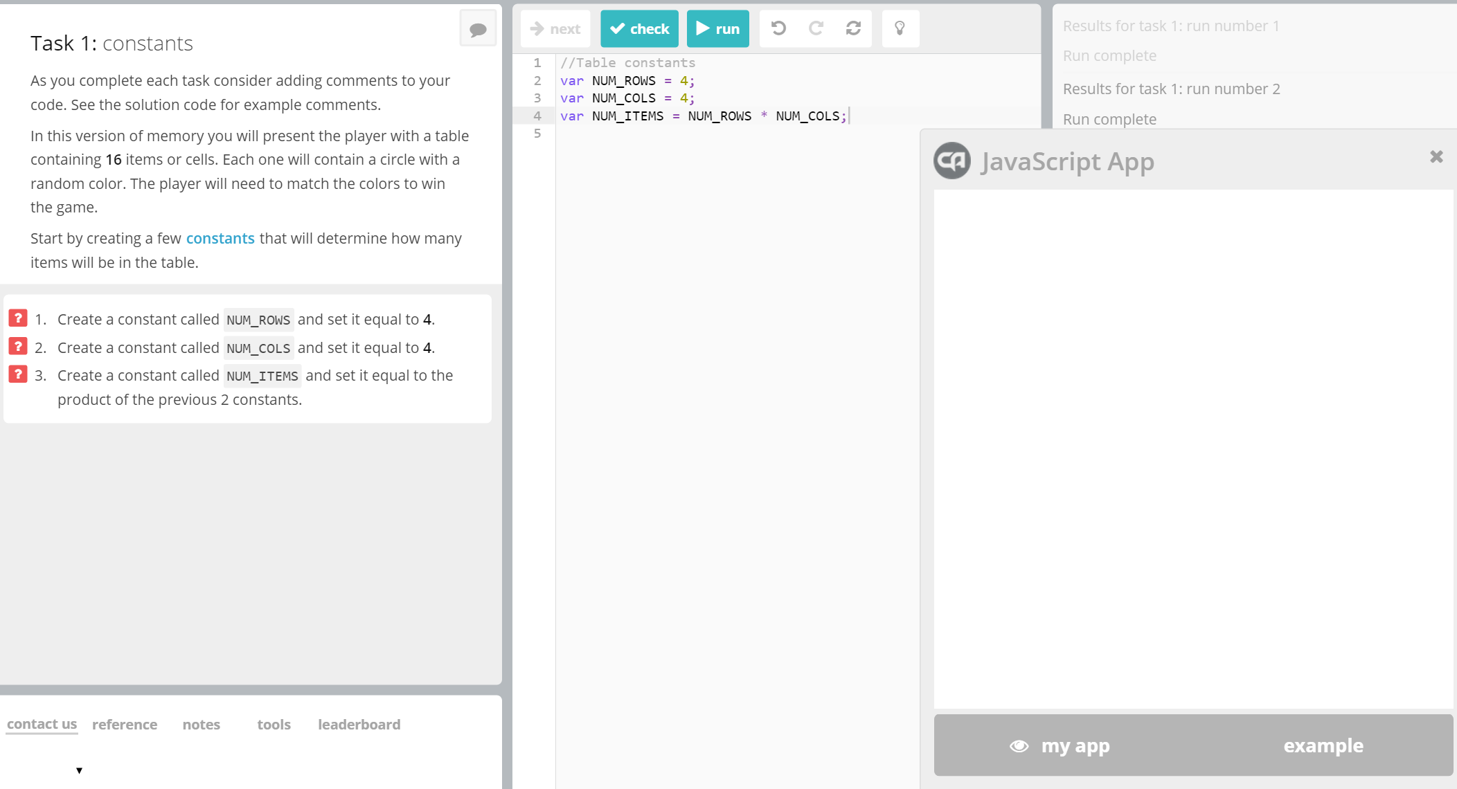 After outdoor activities and a well needed snack break, the AcadeCoders were ready to continue their afternoon full of app developing via JavaScript! They spent the rest of the afternoon with the first project: Eye Spy Game, where they  design their own Eye Spy Game with their own object designs and movement from what they have learned so far. Following this, they transitioned into a programming challenge, where they were given a surprise challenge from the instructors!
